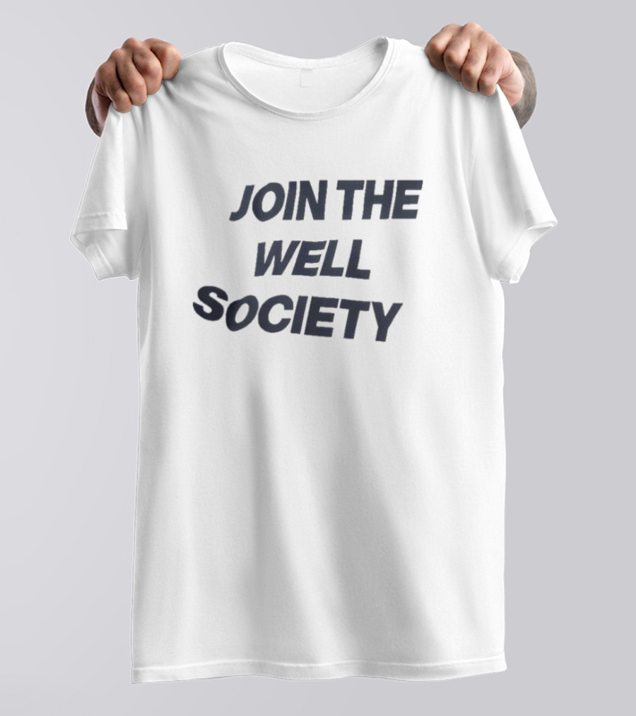 JOIN THE WELL SOCIETY Shirt made from 100% pre-shrunk ring-spun cotton, unisex regular fit based on U.S. standard sizing. The shirt is designed, cut, sewn, and printed in the United States. Available in sizes S-5XL.