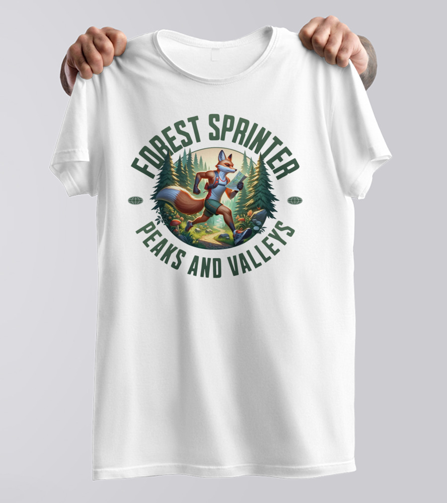 Forest Sprinter Peaks and Valleys Shirt made from 100% pre-shrunk ring-spun cotton, unisex regular fit based on U.S. standard sizing. The shirt is designed, cut, sewn, and printed in the United States. Available in sizes S-5XL.