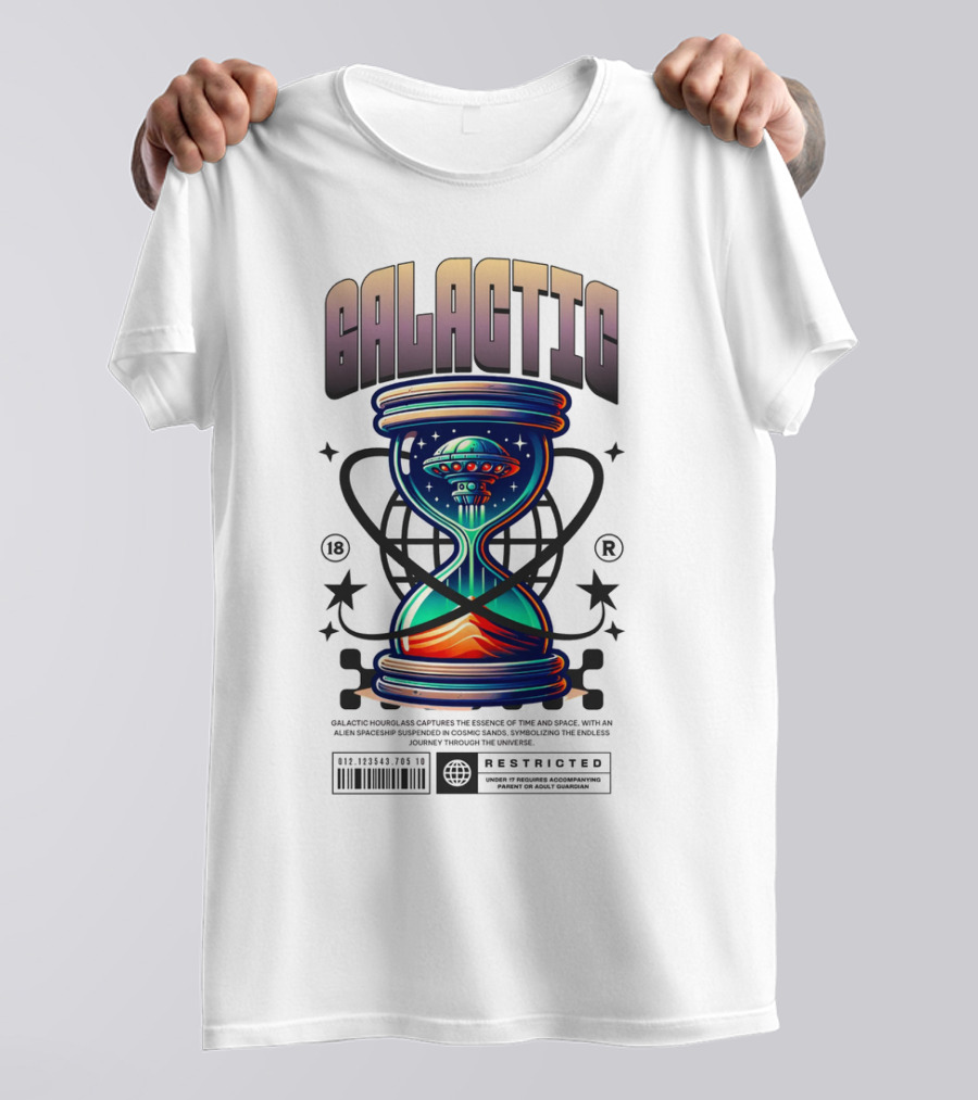 GALACTIC HOURGLASS RESTRICTED COSMIC SPACE ALIEN 18 Shirt made from 100% pre-shrunk ring-spun cotton, unisex regular fit based on U.S. standard sizing. The shirt is designed, cut, sewn, and printed in the United States. Available in sizes S-5XL.