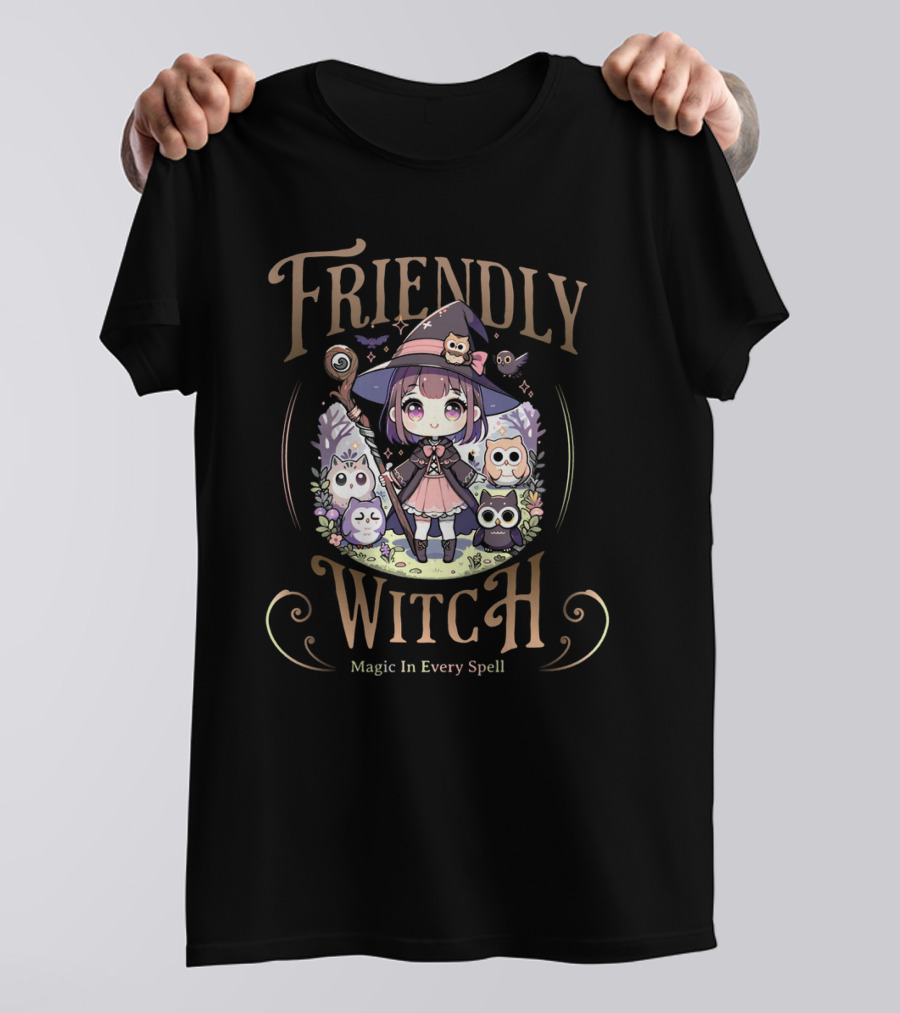 Friendly Witch Magic In Every Spell Kawai Owls Cute Anime T-Shirt