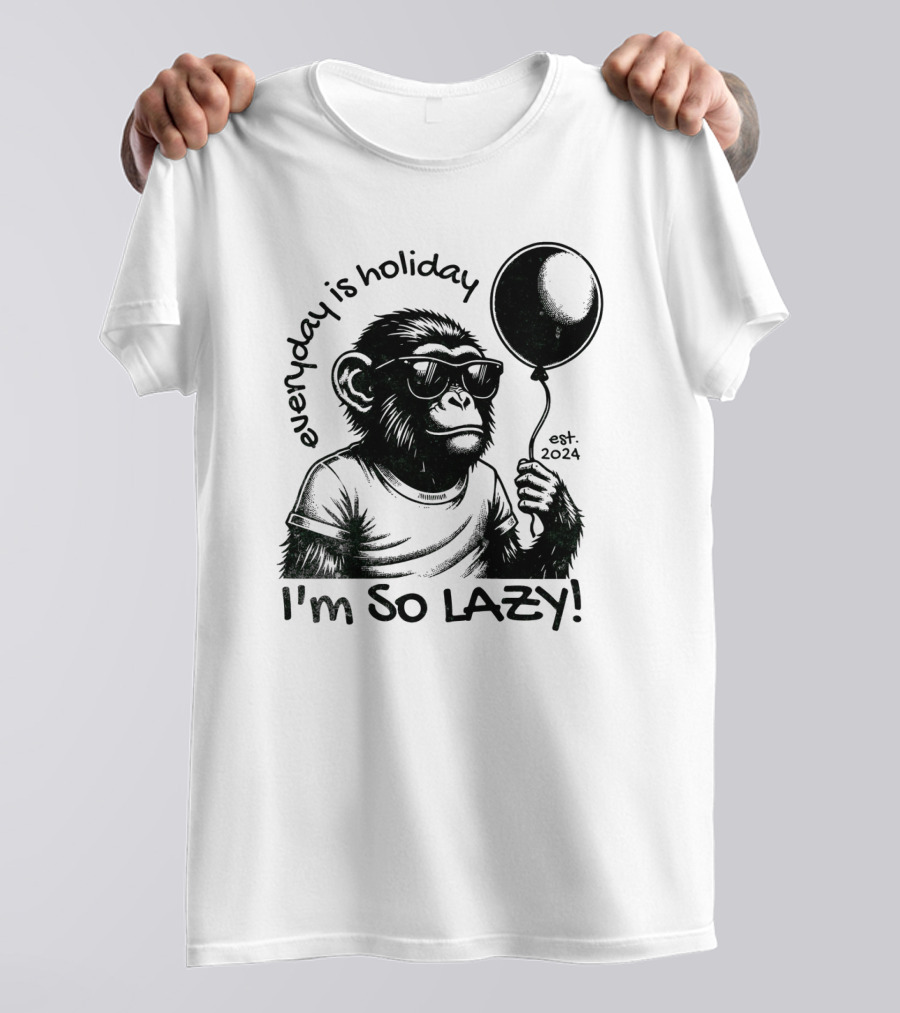Everyday Is Holiday I'm So Lazy Est. Shirt made from 100% pre-shrunk ring-spun cotton, unisex regular fit based on U.S. standard sizing. The shirt is designed, cut, sewn, and printed in the United States. Available in sizes S-5XL.