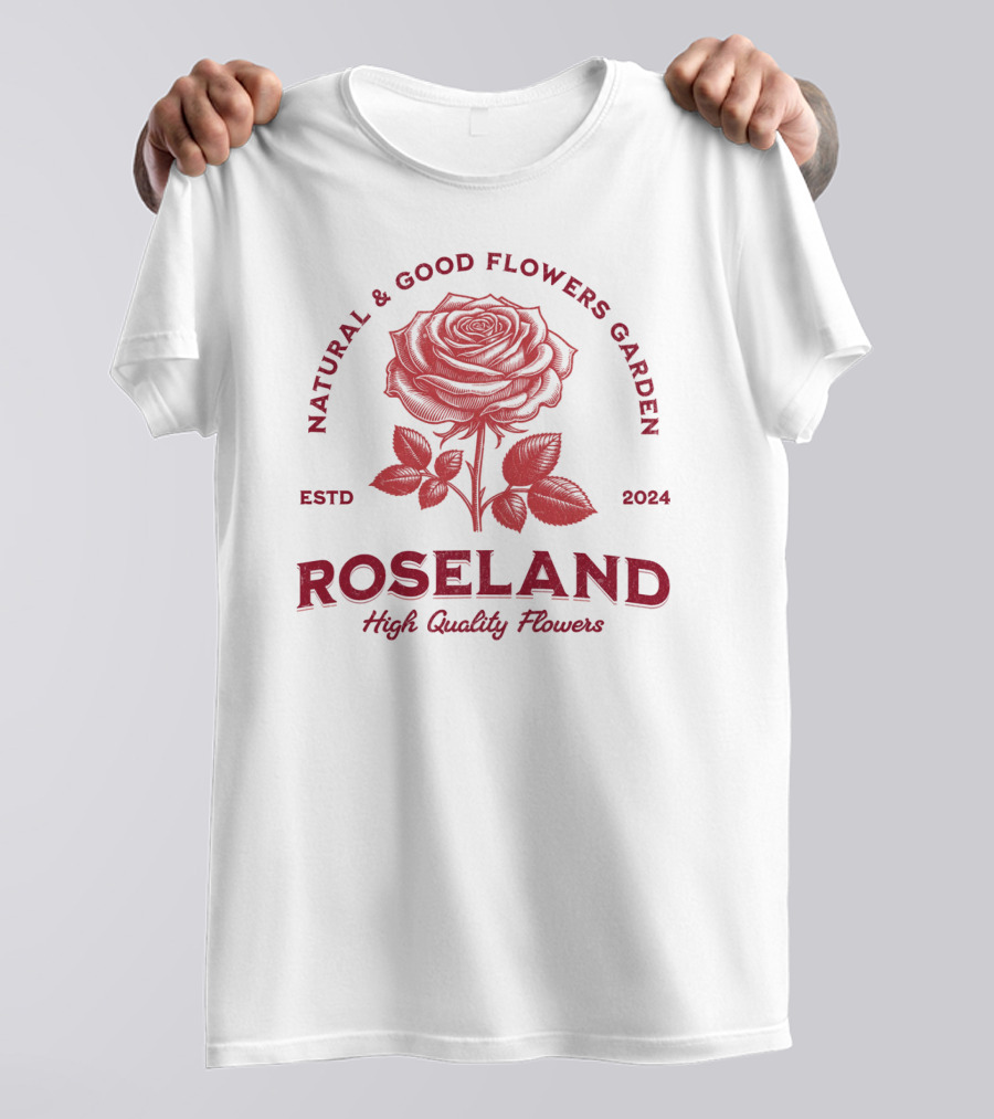 ROSELAND Natural and Good Flowers Garden High Quality Flowers ESTD Shirt made from 100% pre-shrunk ring-spun cotton, unisex regular fit based on U.S. standard sizing. The shirt is designed, cut, sewn, and printed in the United States. Available in sizes S-5XL.