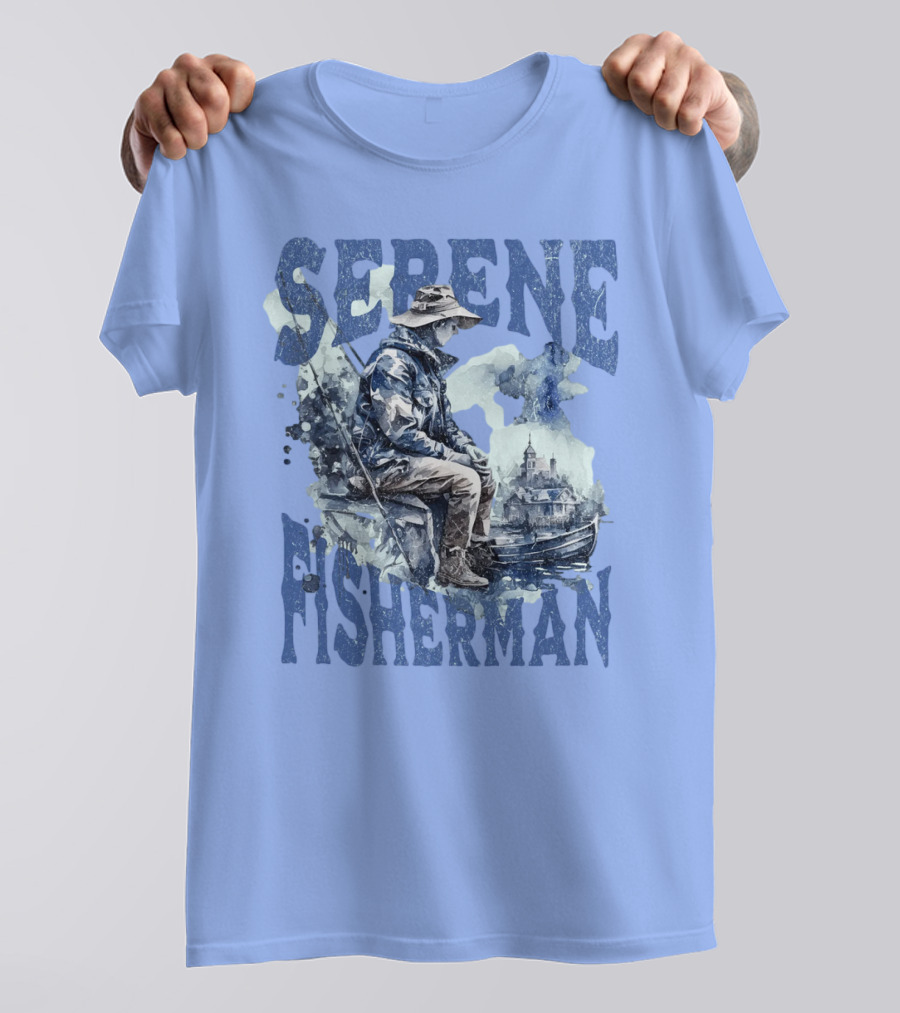 Serene Fisherman in Tranquil Lakeside Town with Boat and Reflection Shirt made from 100% pre-shrunk ring-spun cotton, unisex regular fit based on U.S. standard sizing. The shirt is designed, cut, sewn, and printed in the United States. Available in sizes S-5XL.