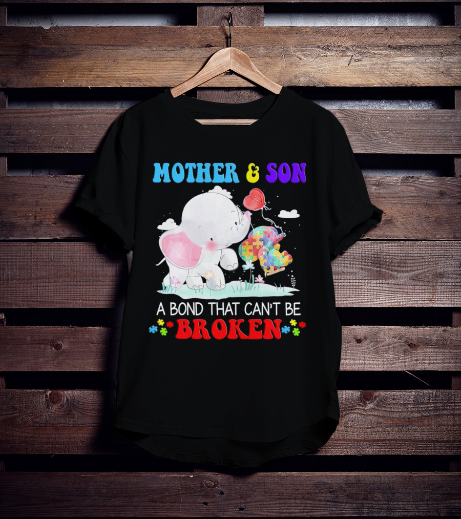 Mother and Son Elephants Autism Puzzle Heart A Bond That Can't Be Broken Shirt made from 100% pre-shrunk ring-spun cotton, unisex regular fit based on U.S. standard sizing. The shirt is designed, cut, sewn, and printed in the United States. Available in sizes S-5XL.