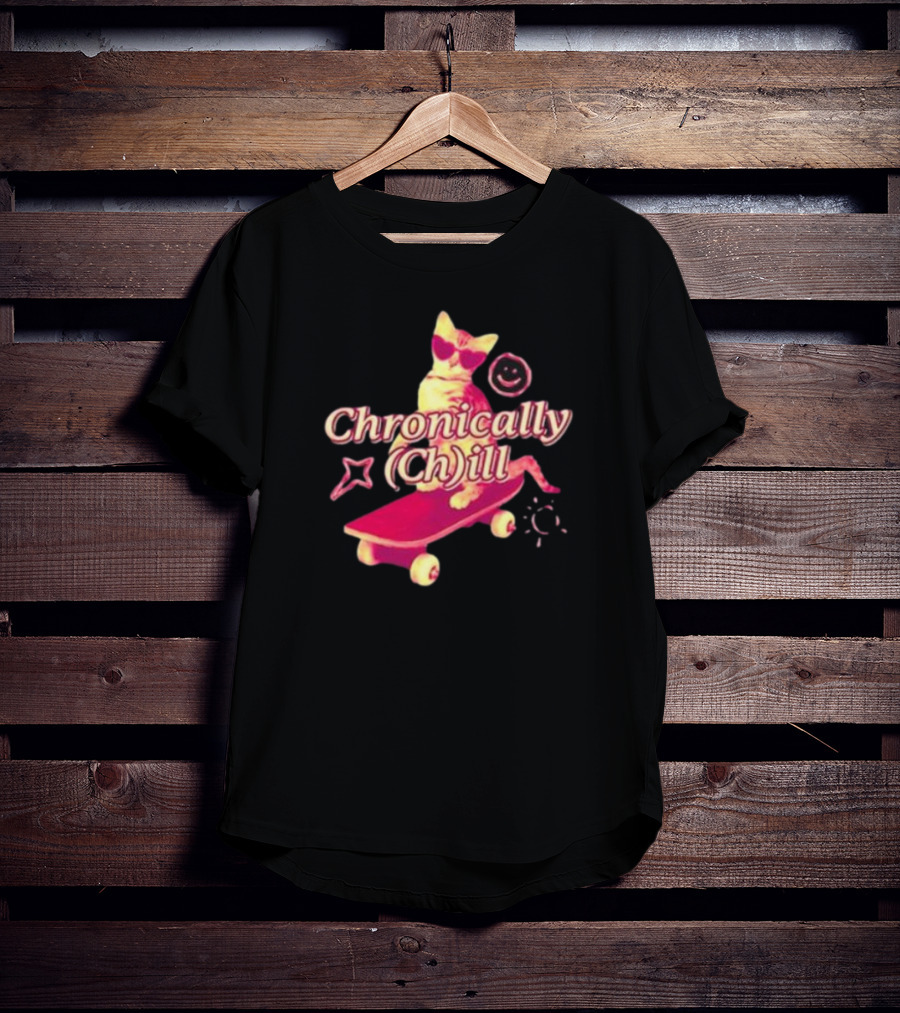 Chronically Ch Ill Cat On Skateboard With Stars And Smiley T-Shirt