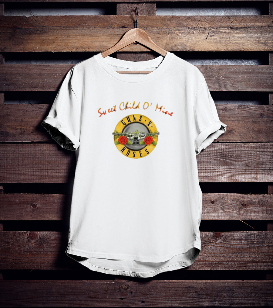 Guns N' Roses Sweet Child O' Mine Circle Logo with Roses and Guns Shirt made from 100% pre-shrunk ring-spun cotton, unisex regular fit based on U.S. standard sizing. The shirt is designed, cut, sewn, and printed in the United States. Available in sizes S-5XL.