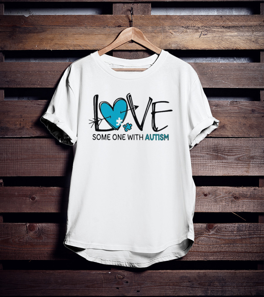 LOVE Some One With AUTISM Blue Puzzle Heart T-Shirt