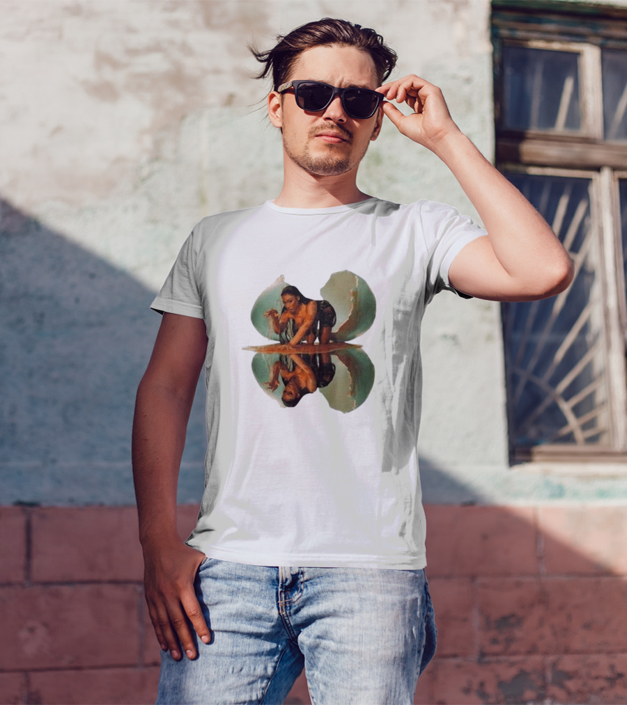 Megantheestallion Megan Sand Hatching Reflection Image Shirt made from 100% pre-shrunk ring-spun cotton, unisex regular fit based on U.S. standard sizing. The shirt is designed, cut, sewn, and printed in the United States. Available in sizes S-5XL.