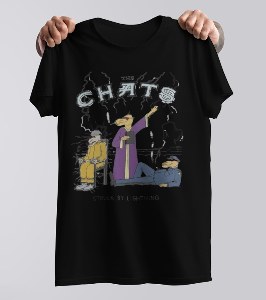 The Chats Struck by Lightning Shirt made from 100% pre-shrunk ring-spun cotton, unisex regular fit based on U.S. standard sizing. The shirt is designed, cut, sewn, and printed in the United States. Available in sizes S-5XL.