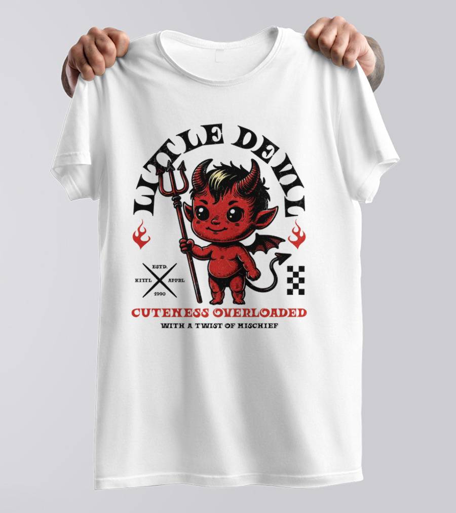 Little Devil Cuteness Overloaded with a Twist of Mischief Shirt made from 100% pre-shrunk ring-spun cotton, unisex regular fit based on U.S. standard sizing. The shirt is designed, cut, sewn, and printed in the United States. Available in sizes S-5XL.