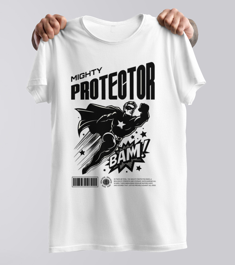 Mighty Protector BAAM Retro Comic Style Superhero T-Shirt
