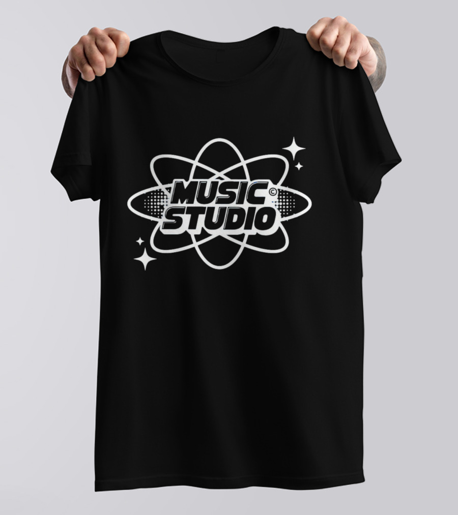 Music Studio Atomic Sound Waves and Stars Shirt made from 100% pre-shrunk ring-spun cotton, unisex regular fit based on U.S. standard sizing. The shirt is designed, cut, sewn, and printed in the United States. Available in sizes S-5XL.