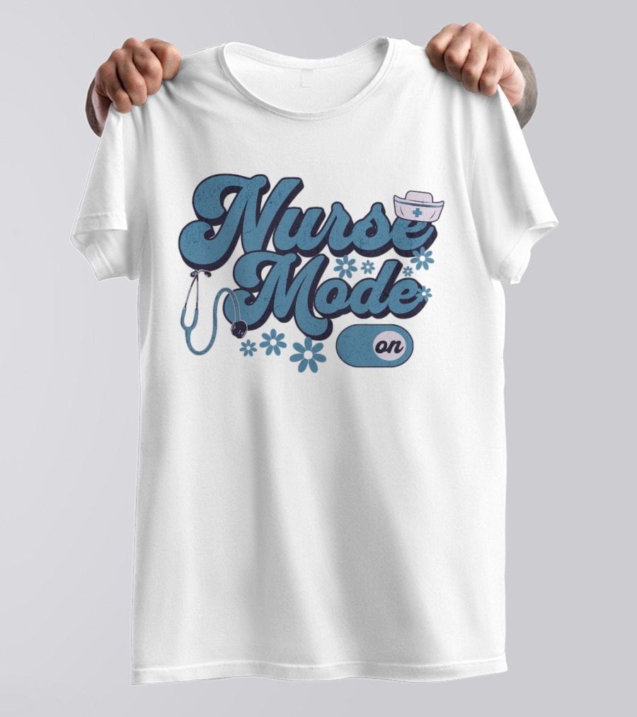 Nurse Mode On Stethoscope and Nurse Hat Healthcare Shirt made from 100% pre-shrunk ring-spun cotton, unisex regular fit based on U.S. standard sizing. The shirt is designed, cut, sewn, and printed in the United States. Available in sizes S-5XL.