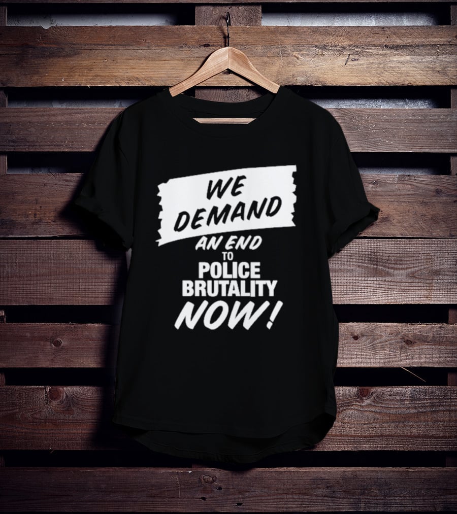 We Demand An End To Police Brutality Now Shirt made from 100% pre-shrunk ring-spun cotton, unisex regular fit based on U.S. standard sizing. The shirt is designed, cut, sewn, and printed in the United States. Available in sizes S-5XL.
