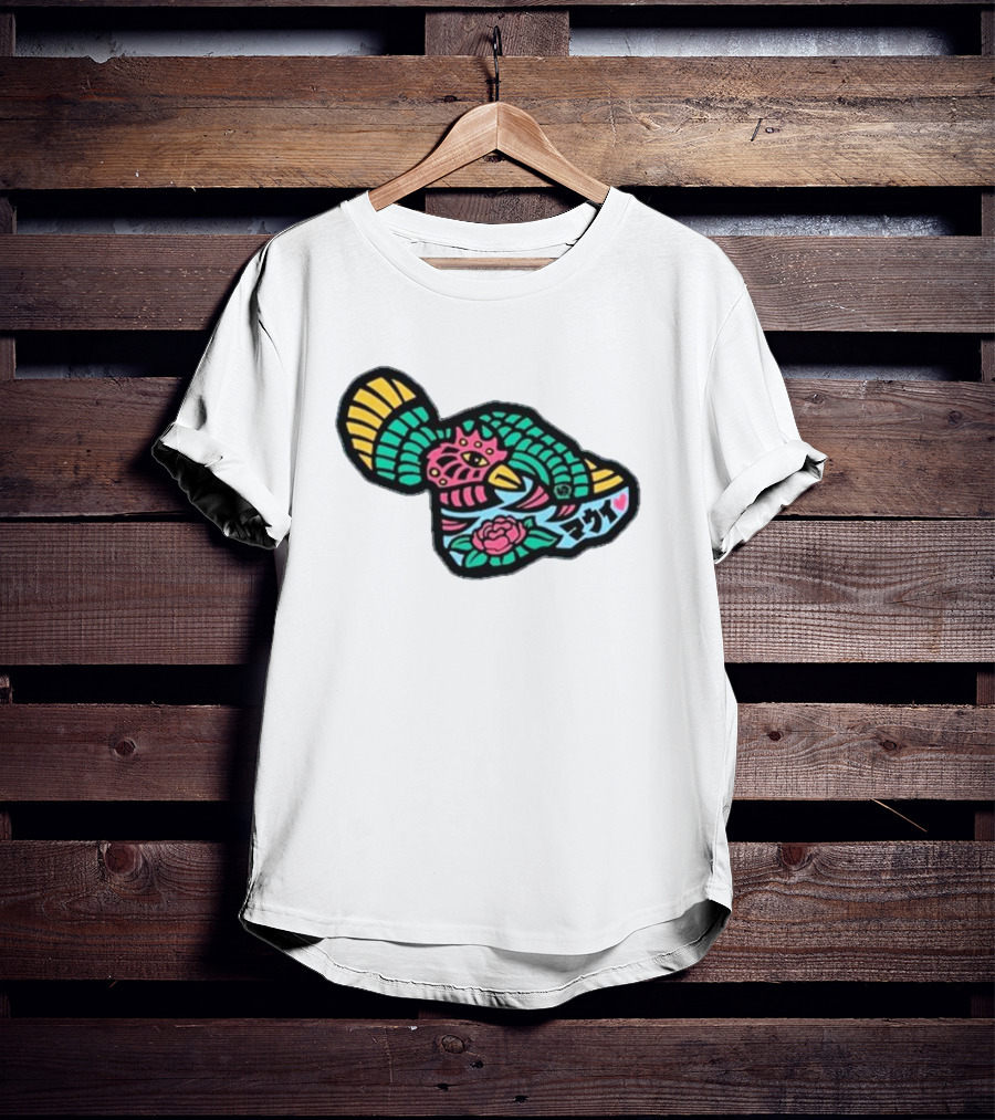To maintain the vibrancy of the print, wash the shirt inside-out in cold water and avoid using bleach. Tumble dry low or hang dry. Do not iron directly on the print.