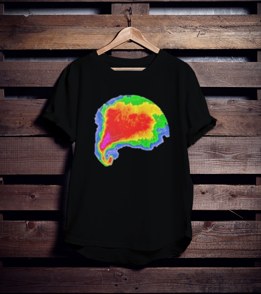 Supercell Weather Radar Heat Map Storm Formation Shirt made from 100% pre-shrunk ring-spun cotton, unisex regular fit based on U.S. standard sizing. The shirt is designed, cut, sewn, and printed in the United States. Available in sizes S-5XL.