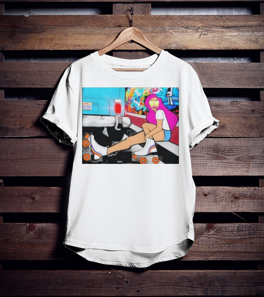 Tasha Vibrant Roller Skating Cali Street Art Vibe Shirt made from 100% pre-shrunk ring-spun cotton, unisex regular fit based on U.S. standard sizing. The shirt is designed, cut, sewn, and printed in the United States. Available in sizes S-5XL.