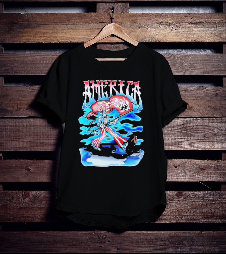 Warren Lotas America Skeleton Uncle Sam With Skull Flags T-Shirt