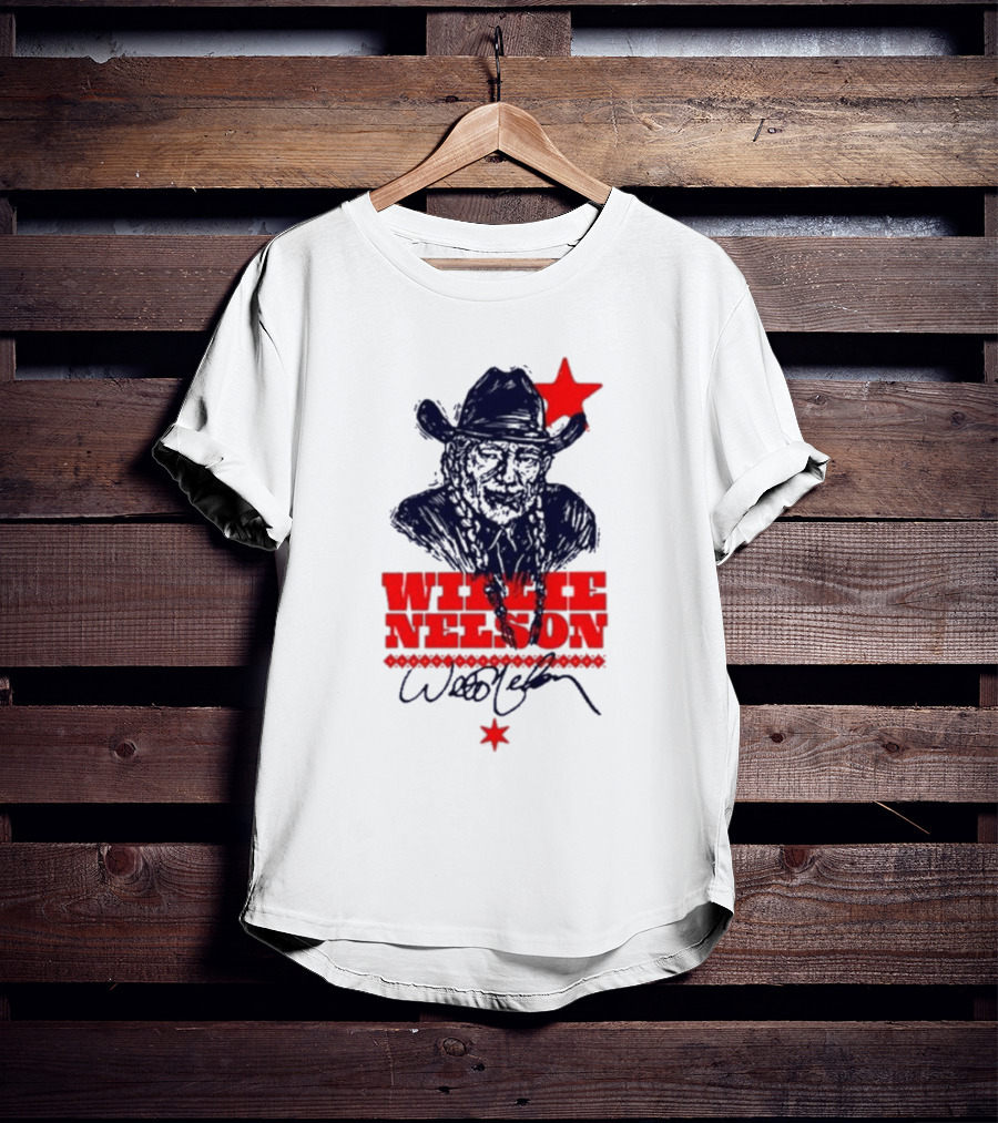 Willie Nelson Woodcut Cowboy Hat Red Star Shirt made from 100% pre-shrunk ring-spun cotton, unisex regular fit based on U.S. standard sizing. The shirt is designed, cut, sewn, and printed in the United States. Available in sizes S-5XL.