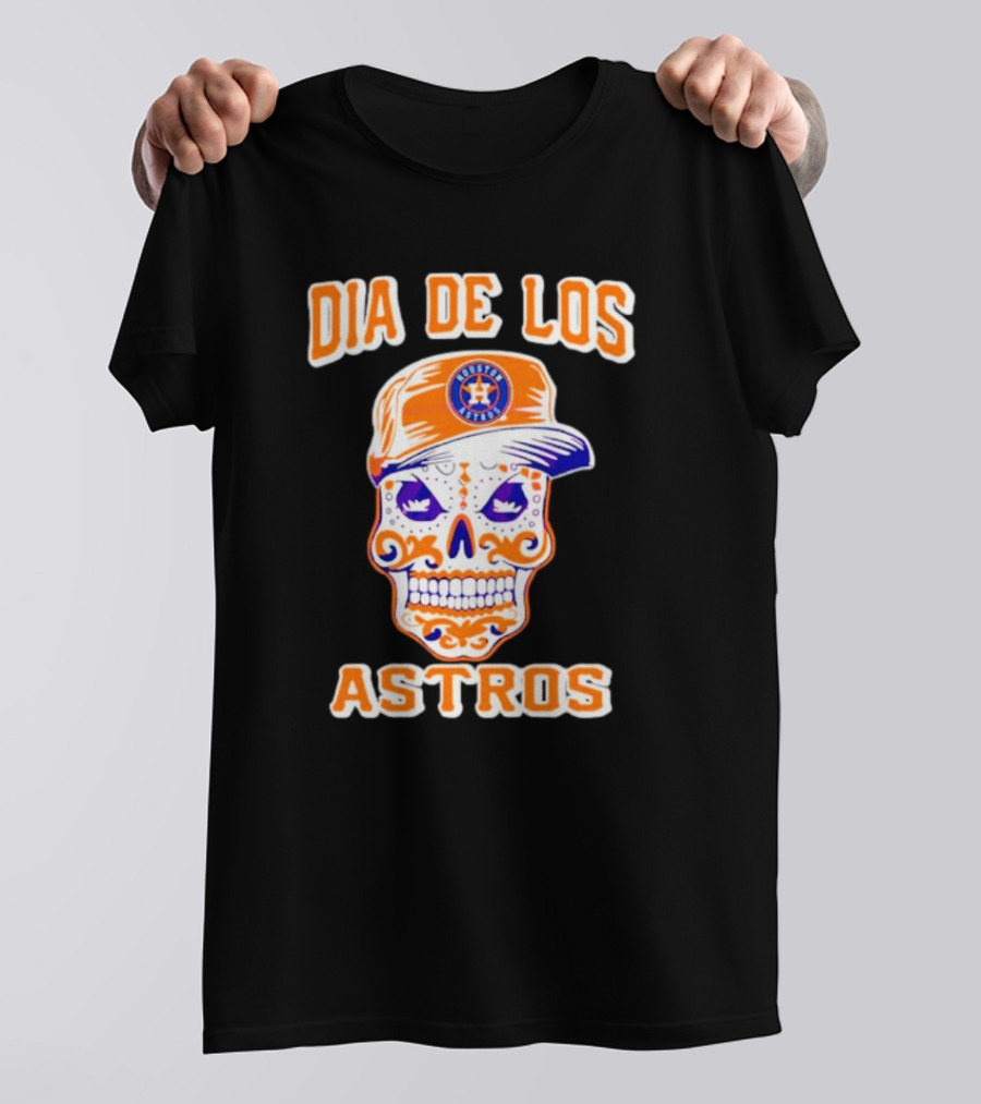 Dia De Los Astros Houston Sugar Skull Shirt made from 100% pre-shrunk ring-spun cotton, unisex regular fit based on U.S. standard sizing. The shirt is designed, cut, sewn, and printed in the United States. Available in sizes S-5XL.