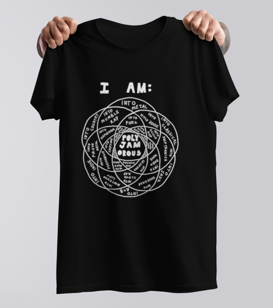 I Am Polyjamorous Into Punk Metal Classical Disco House Techno Folk Mumble Rap Shirt made from 100% pre-shrunk ring-spun cotton, unisex regular fit based on U.S. standard sizing. The shirt is designed, cut, sewn, and printed in the United States. Available in sizes S-5XL.