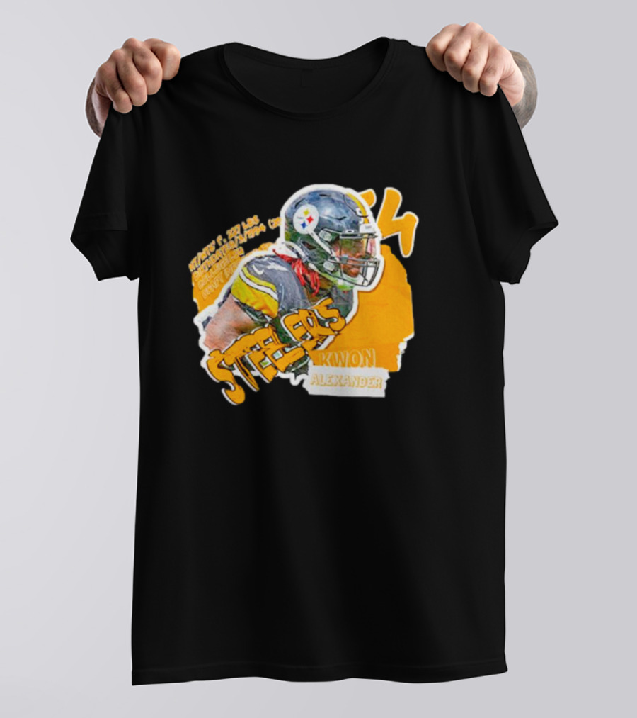 Kwon Alexander Steelers Helmet Football Shirt made from 100% pre-shrunk ring-spun cotton, unisex regular fit based on U.S. standard sizing. The shirt is designed, cut, sewn, and printed in the United States. Available in sizes S-5XL.