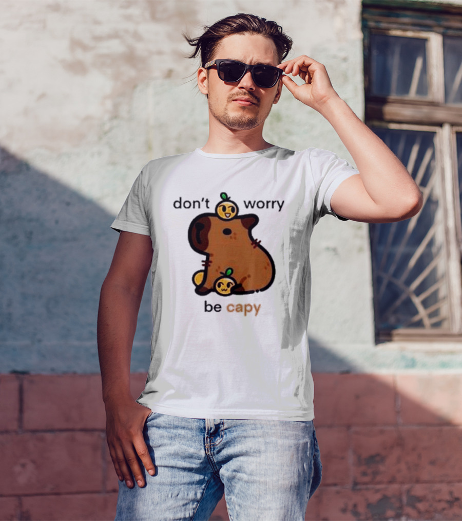 Eveoart Don’t Worry Be Capy Cute Capybara With Fruit Companions T-Shirt