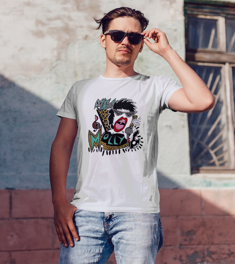 Miss Molly 90s Vintage Leopard Print Music Vibes Shirt made from 100% pre-shrunk ring-spun cotton, unisex regular fit based on U.S. standard sizing. The shirt is designed, cut, sewn, and printed in the United States. Available in sizes S-5XL.