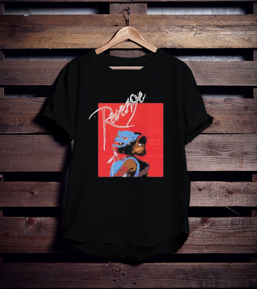 Revenge Warrior With Blue Mask And Bold Typography T-Shirt