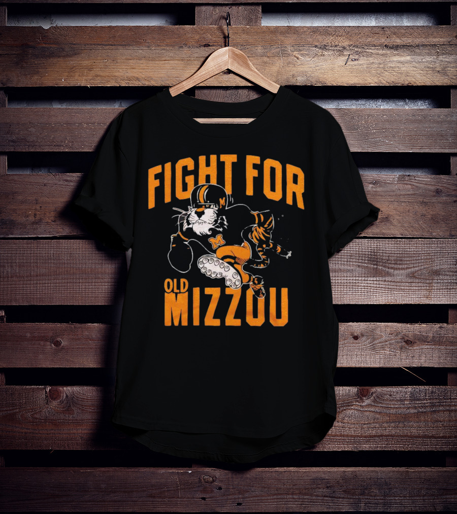 Fight for Old Mizzou Football Mascot in Action Shirt made from 100% pre-shrunk ring-spun cotton, unisex regular fit based on U.S. standard sizing. The shirt is designed, cut, sewn, and printed in the United States. Available in sizes S-5XL.