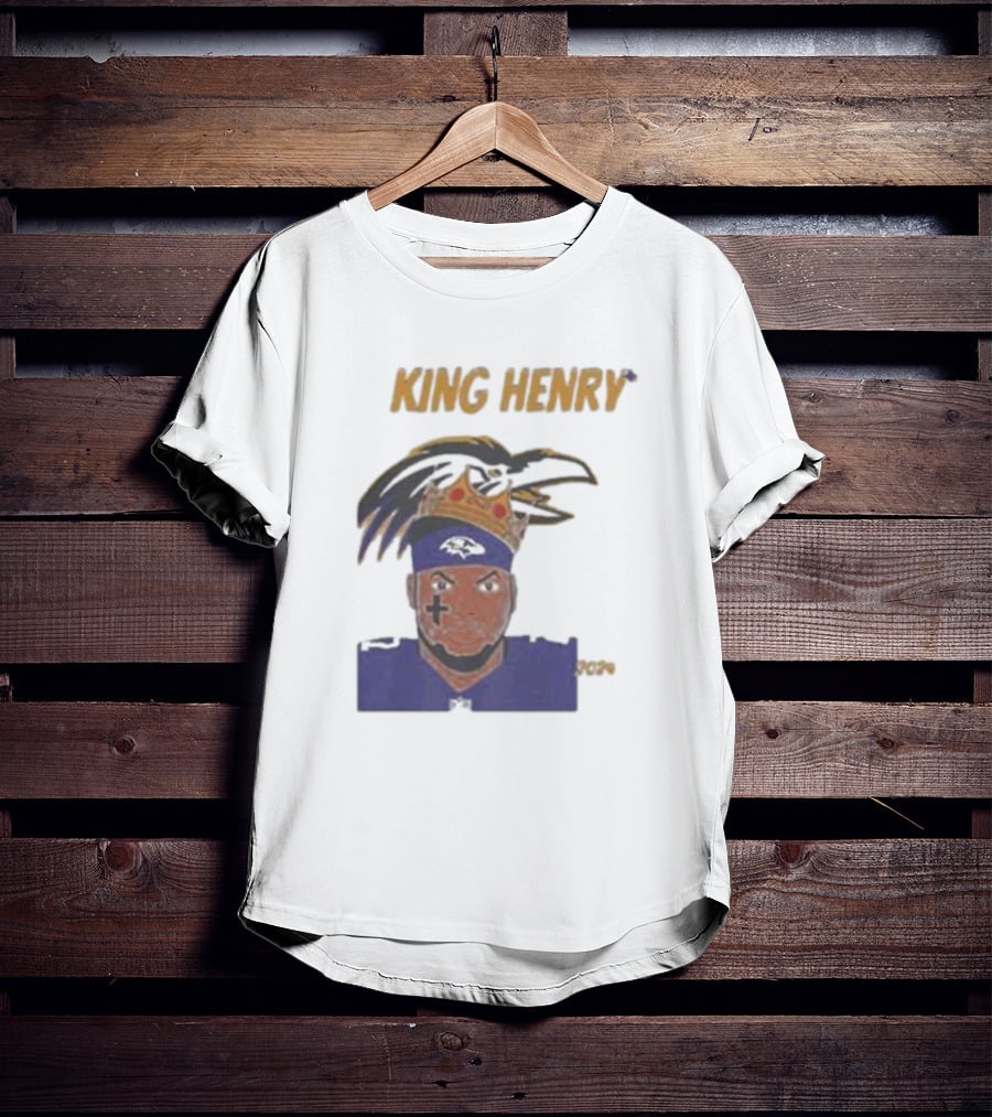 Ravens Football King Henry Baltimore NFL Shirt made from 100% pre-shrunk ring-spun cotton, unisex regular fit based on U.S. standard sizing. The shirt is designed, cut, sewn, and printed in the United States. Available in sizes S-5XL.