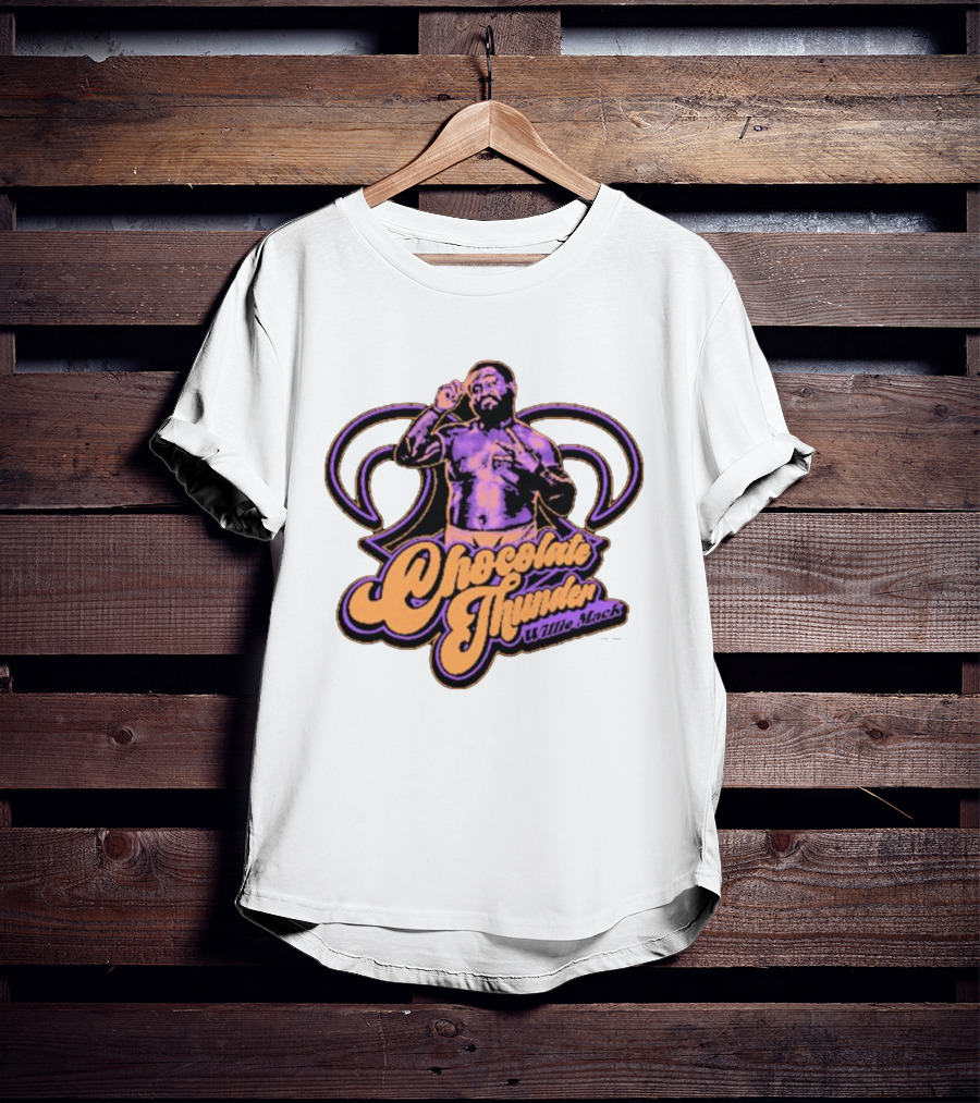 Ring Of Honor Chocolate Thunder Willie Mack Shirt made from 100% pre-shrunk ring-spun cotton, unisex regular fit based on U.S. standard sizing. The shirt is designed, cut, sewn, and printed in the United States. Available in sizes S-5XL.