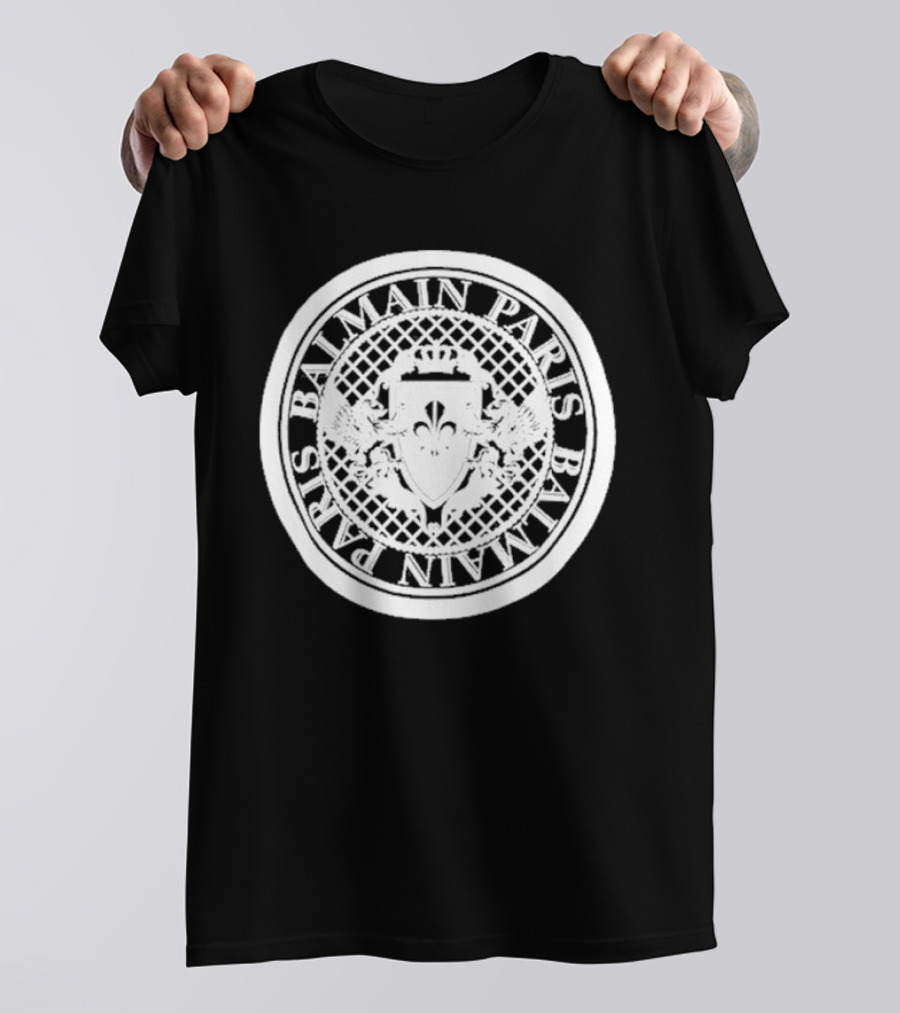 Balmain Paris Crest Emblem Coin Shirt made from 100% pre-shrunk ring-spun cotton, unisex regular fit based on U.S. standard sizing. The shirt is designed, cut, sewn, and printed in the United States. Available in sizes S-5XL.