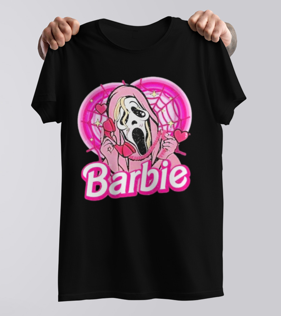 Barbie Horror Doll Ghost Face With Hearts And Pink Spiderwebs T-Shirt