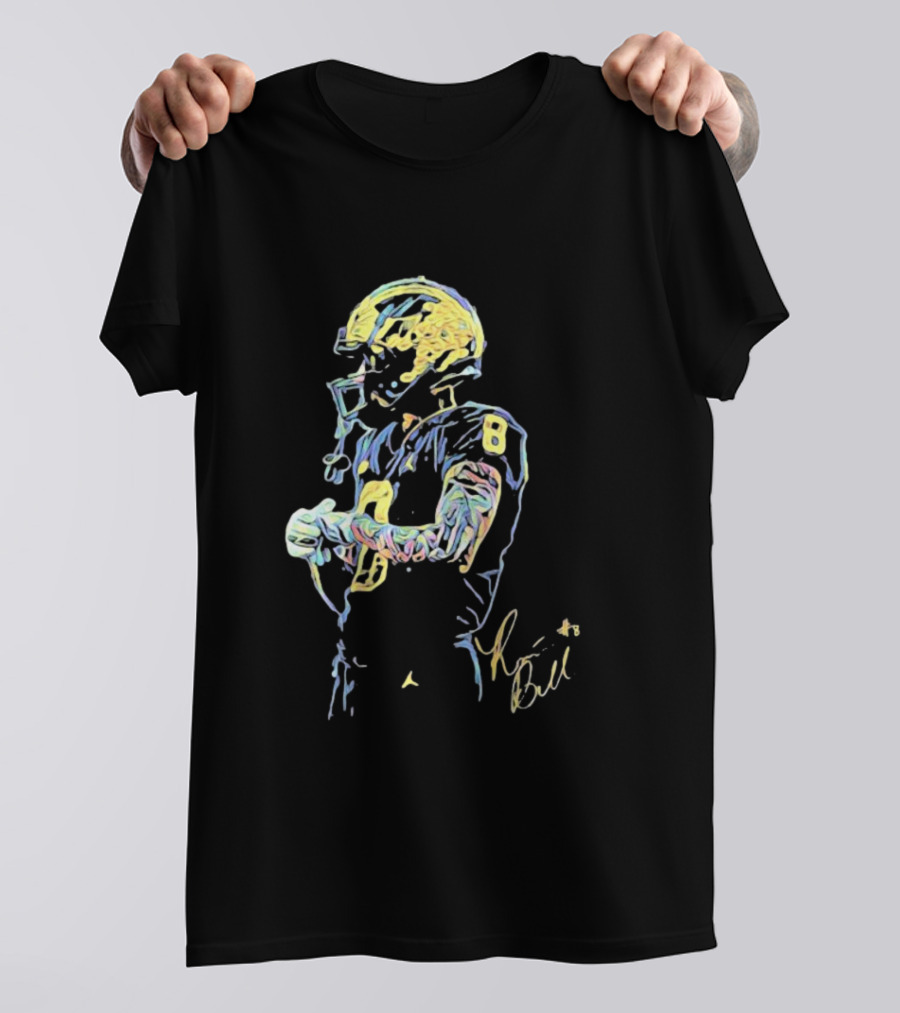 rB8 Signature Football Artwork with Player Number 8 Shirt made from 100% pre-shrunk ring-spun cotton, unisex regular fit based on U.S. standard sizing. The shirt is designed, cut, sewn, and printed in the United States. Available in sizes S-5XL.