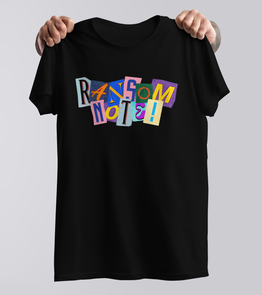 Ransom Note Colorful Letters Collage Shirt made from 100% pre-shrunk ring-spun cotton, unisex regular fit based on U.S. standard sizing. The shirt is designed, cut, sewn, and printed in the United States. Available in sizes S-5XL.