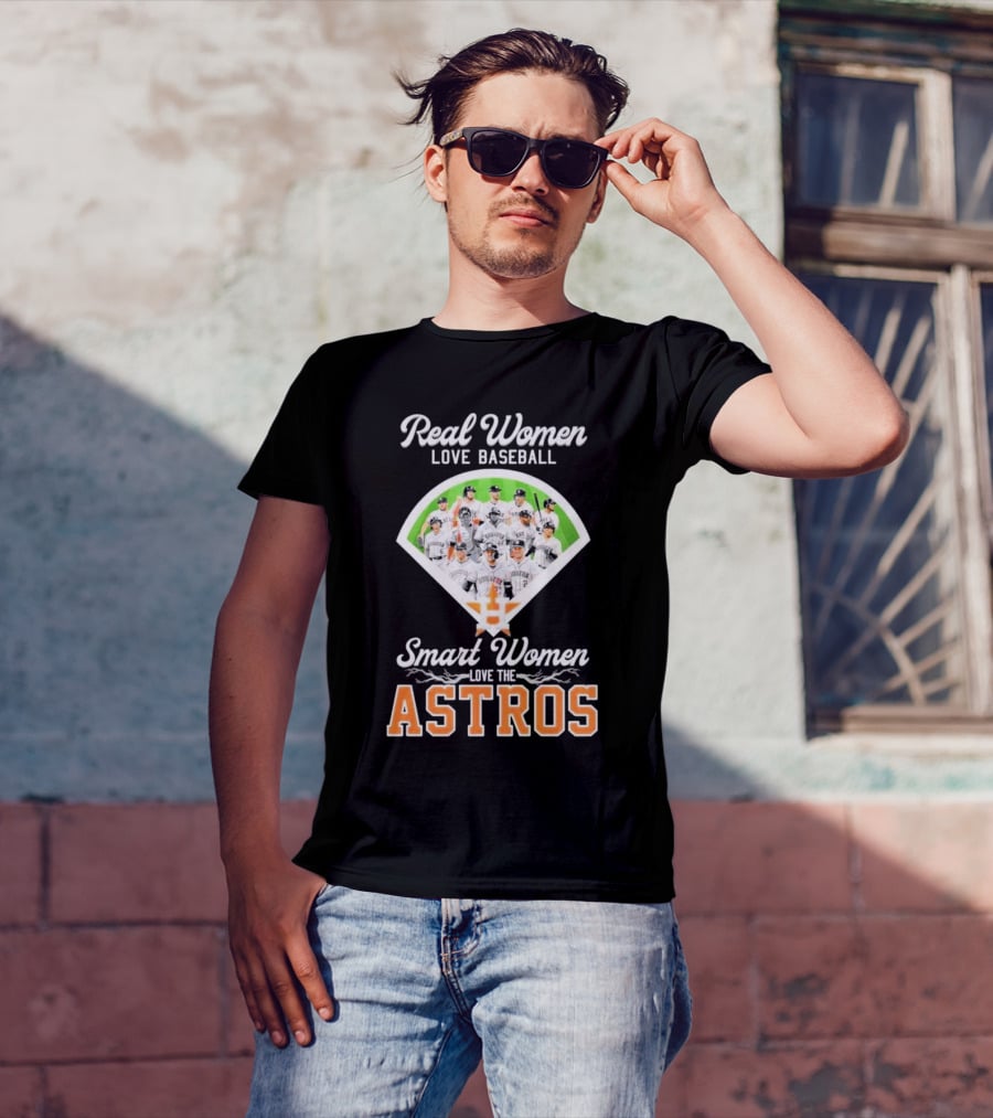 Real Women Love Baseball Smart Women Love The Astros Houston Team Shirt made from 100% pre-shrunk ring-spun cotton, unisex regular fit based on U.S. standard sizing. The shirt is designed, cut, sewn, and printed in the United States. Available in sizes S-5XL.
