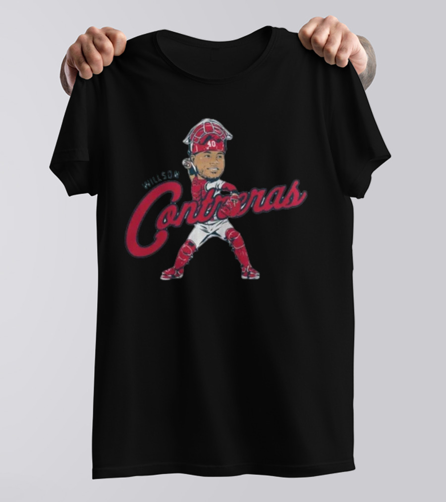 Willson Contreras Catcher Caricature 40 Shirt made from 100% pre-shrunk ring-spun cotton, unisex regular fit based on U.S. standard sizing. The shirt is designed, cut, sewn, and printed in the United States. Available in sizes S-5XL.