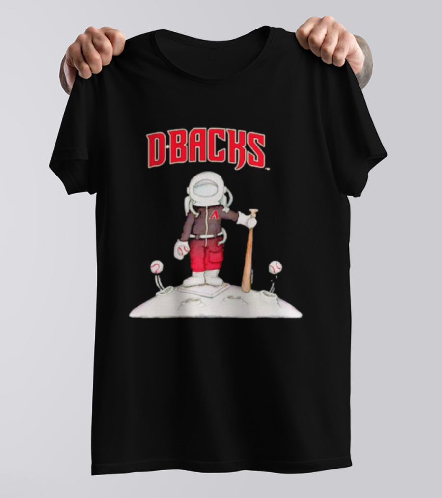 Dbacks Astronaut Mascot with Baseball Bat on Moon Shirt made from 100% pre-shrunk ring-spun cotton, unisex regular fit based on U.S. standard sizing. The shirt is designed, cut, sewn, and printed in the United States. Available in sizes S-5XL.