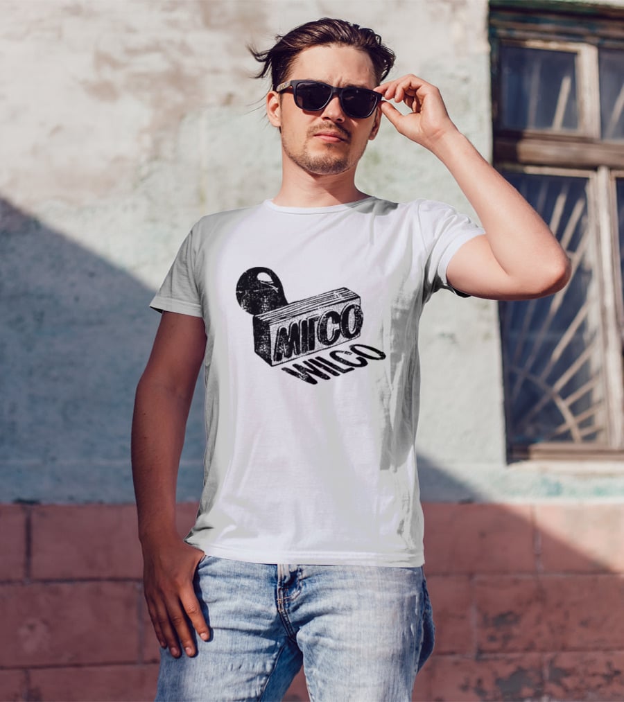 Wilco Stamp Rubber Ink Block Shirt made from 100% pre-shrunk ring-spun cotton, unisex regular fit based on U.S. standard sizing. The shirt is designed, cut, sewn, and printed in the United States. Available in sizes S-5XL.