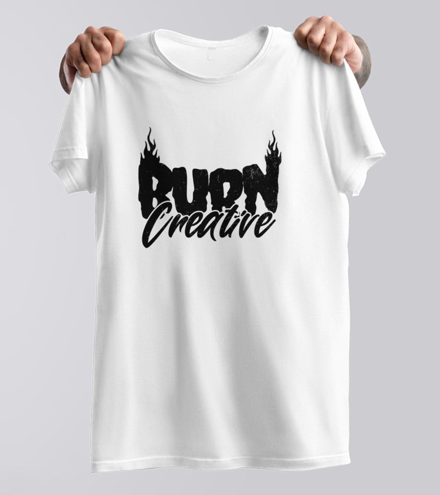 Burn Creative Flame Text Shirt made from 100% pre-shrunk ring-spun cotton, unisex regular fit based on U.S. standard sizing. The shirt is designed, cut, sewn, and printed in the United States. Available in sizes S-5XL.