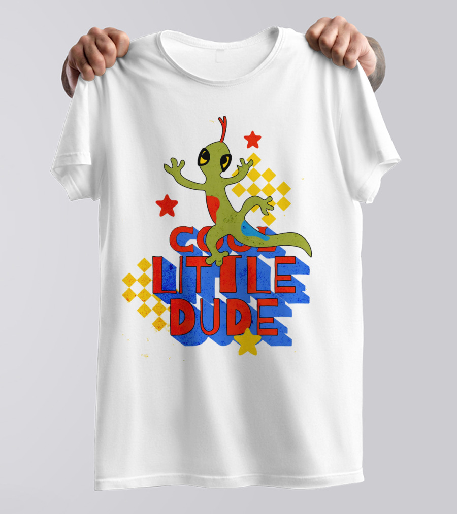 Cool Little Dude Lizard With Stars And Checkerboard T-Shirt