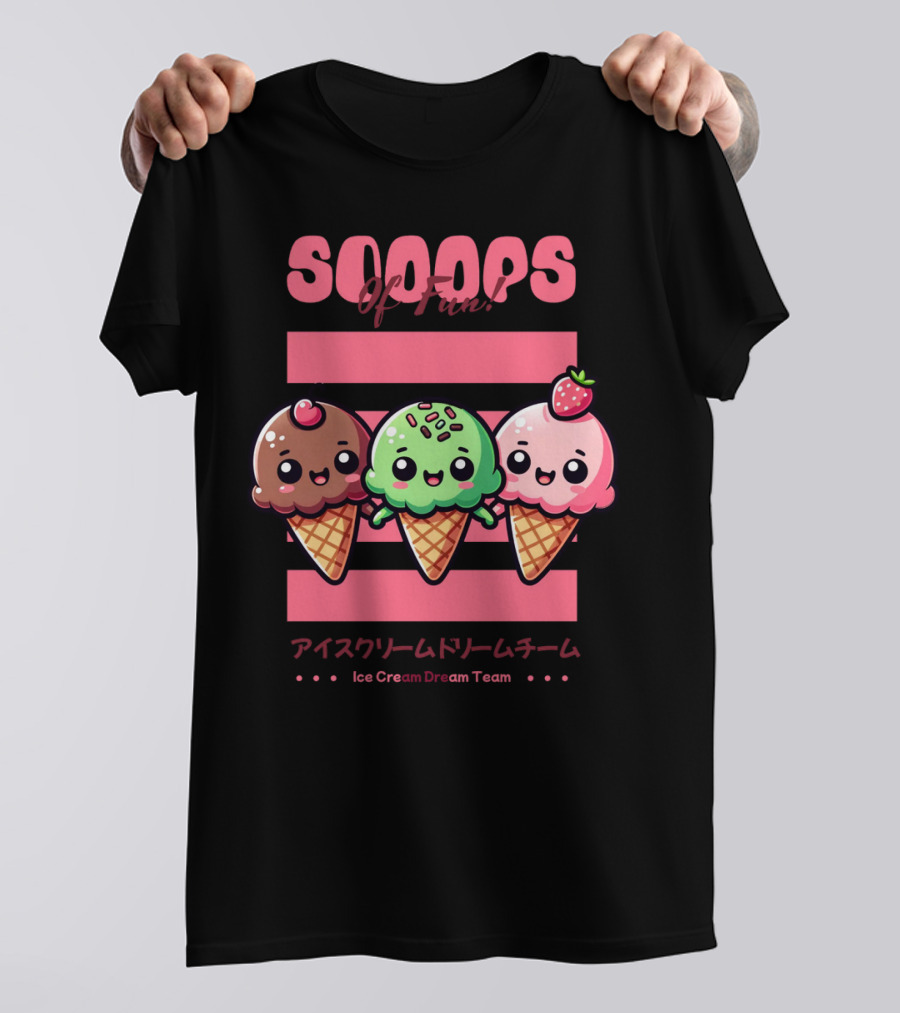 Scoops Of Fun Ice Cream Dream Team Kawaii Cones T-Shirt