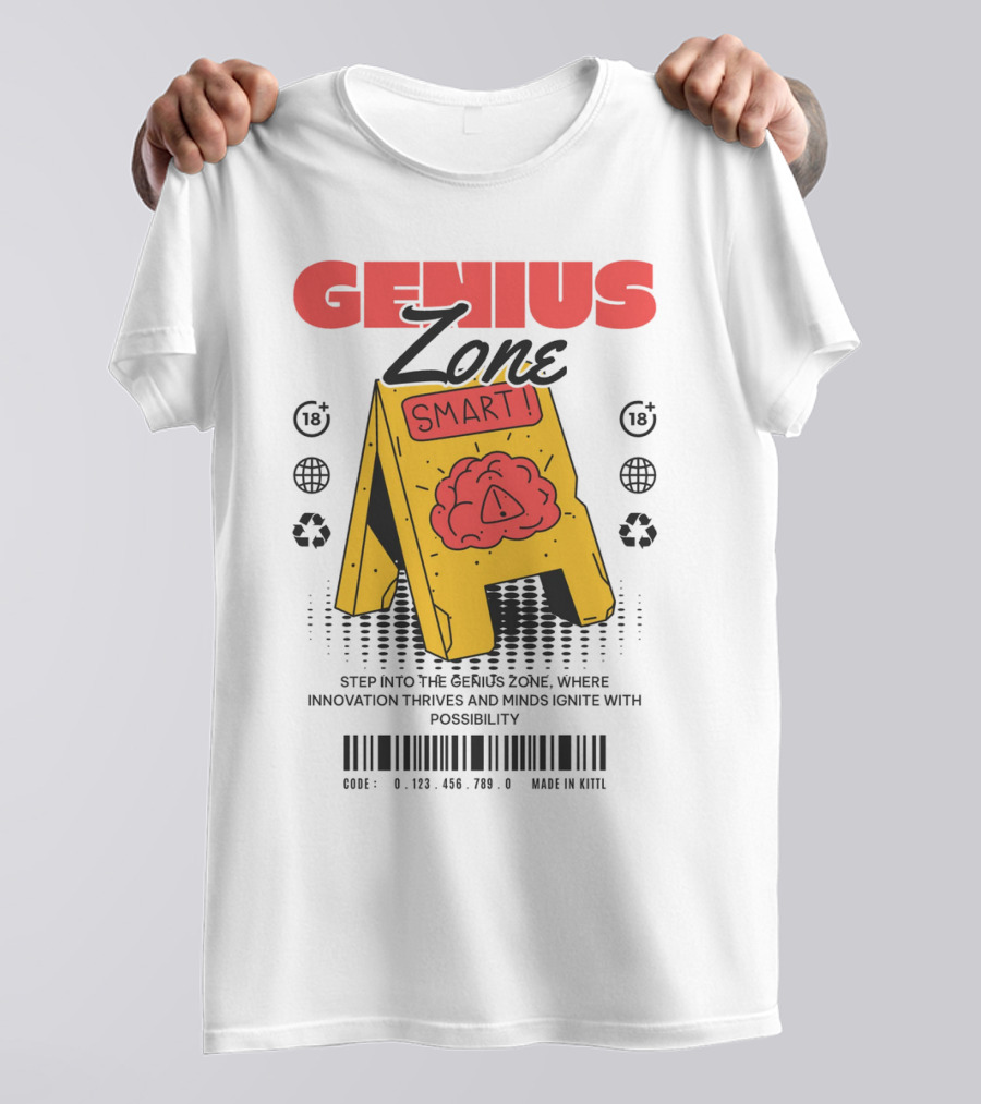 GENIUS ZONE SMART BRAIN SIGN Shirt made from 100% pre-shrunk ring-spun cotton, unisex regular fit based on U.S. standard sizing. The shirt is designed, cut, sewn, and printed in the United States. Available in sizes S-5XL.