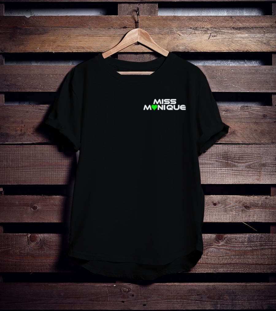 Miss Monique Green Heart Logo Shirt made from 100% pre-shrunk ring-spun cotton, unisex regular fit based on U.S. standard sizing. The shirt is designed, cut, sewn, and printed in the United States. Available in sizes S-5XL.