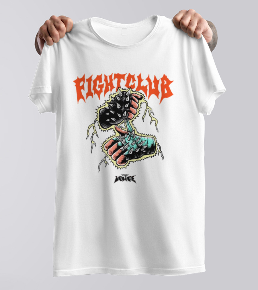 Fight Club Gloves Spiked Violence Shirt made from 100% pre-shrunk ring-spun cotton, unisex regular fit based on U.S. standard sizing. The shirt is designed, cut, sewn, and printed in the United States. Available in sizes S-5XL.