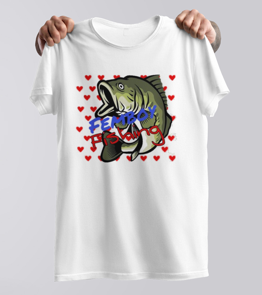 Femboy Fishing With Heart Pattern And Big Mouth Bass T-Shirt