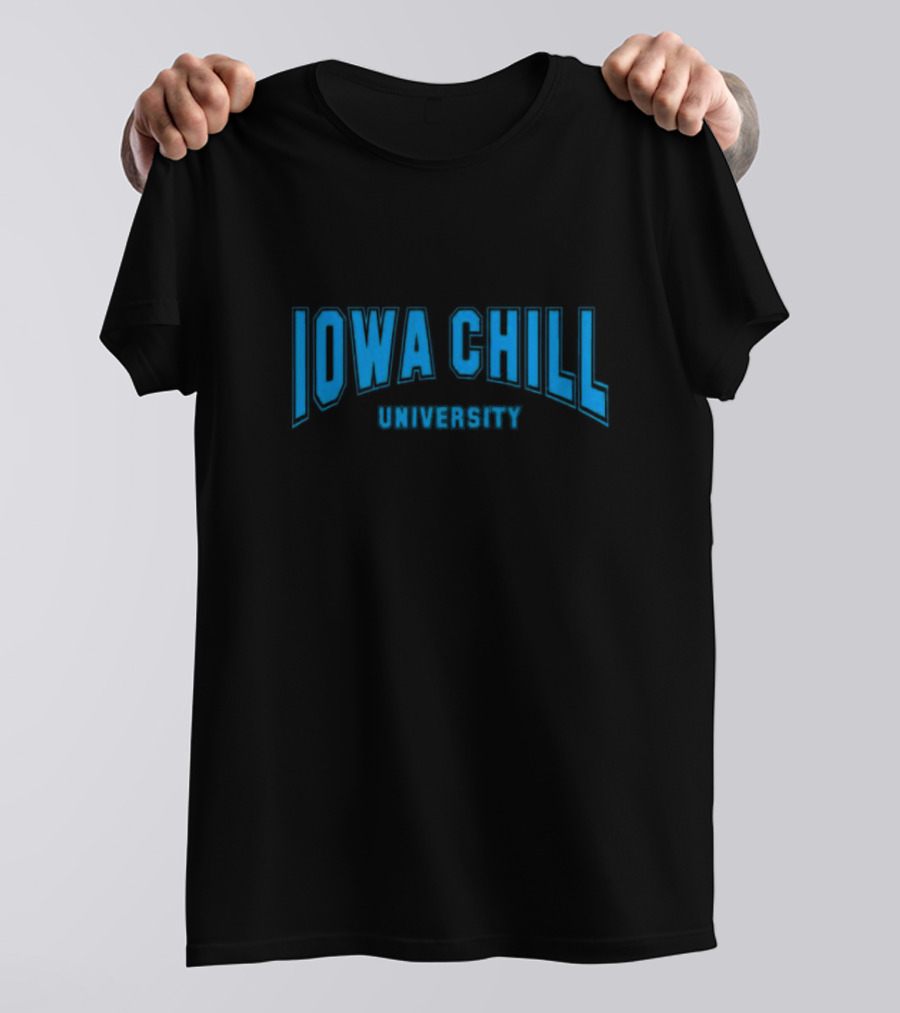 Iowa Chill University Blue Collegiate Shirt made from 100% pre-shrunk ring-spun cotton, unisex regular fit based on U.S. standard sizing. The shirt is designed, cut, sewn, and printed in the United States. Available in sizes S-5XL.