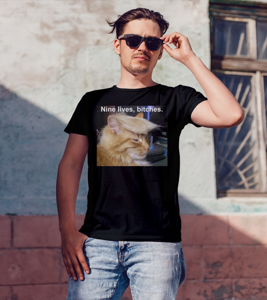 Nine Lives Bitches Funny Cat Meme T-Shirt