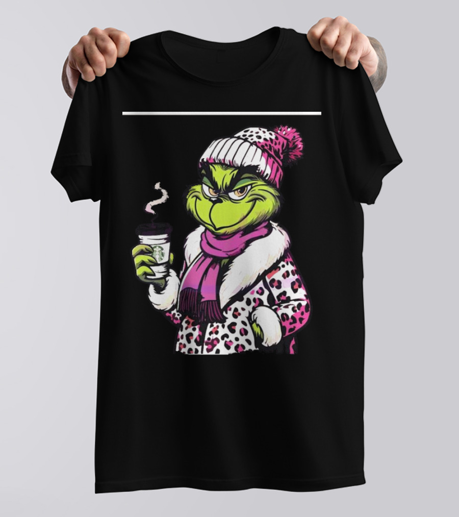 Grinchy and Bougie in Pink Leopard with Coffee Cup Shirt made from 100% pre-shrunk ring-spun cotton, unisex regular fit based on U.S. standard sizing. The shirt is designed, cut, sewn, and printed in the United States. Available in sizes S-5XL.